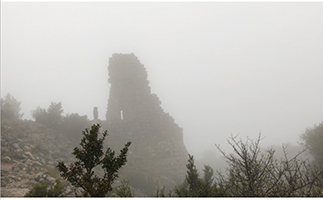 Orte dieser Erde, die in einem gleichen oder ähnlichen Licht scheinen, sprich: eine ähnliche Frequenz aufweisen, verknüpft mein Bewusstsein automatisch miteinander. So erging es mir auch mit dem Château Périllos, welches wir auf unserer Weiterreise noch besuchten. Diese zerfallene Burg wird auch im mysteriösen Wissensschatz des legendären Bérenger Saunier ( link to Worldgathering ) von Rennes-le-Chateau dokumentiert. Im dichten Nebel, der an Avalon mahnte, war die Ruine, die unter normalen Verhältnissen von der Strasse aus sichtbar gewesen wäre, kaum zu finden. Eigentlich wussten wir anfangs gar nicht wieso unser Weg dorthin führte. Erst als ich auf der alten Anlage herum stöberte, den Geruch des Meeres wahr nahm, der sich mit Wind und Nebel mischte, überblendete sich dieser Ort mit Tintagel in England. Auch Périllos scheint eine Mysterienschule zu beherbergen und schwingt in der gleichen Frequenz wie Tintagel. Wo einst König Artus geboren worden sein soll um seine Weisheit (sutrA) an 12 Könige zu verteilen, die sie weiter trugen: Dieser Mythos der Suche nach dem Gral, der Erleuchtung und der Freiheit ist in ganz Europa verteilt.